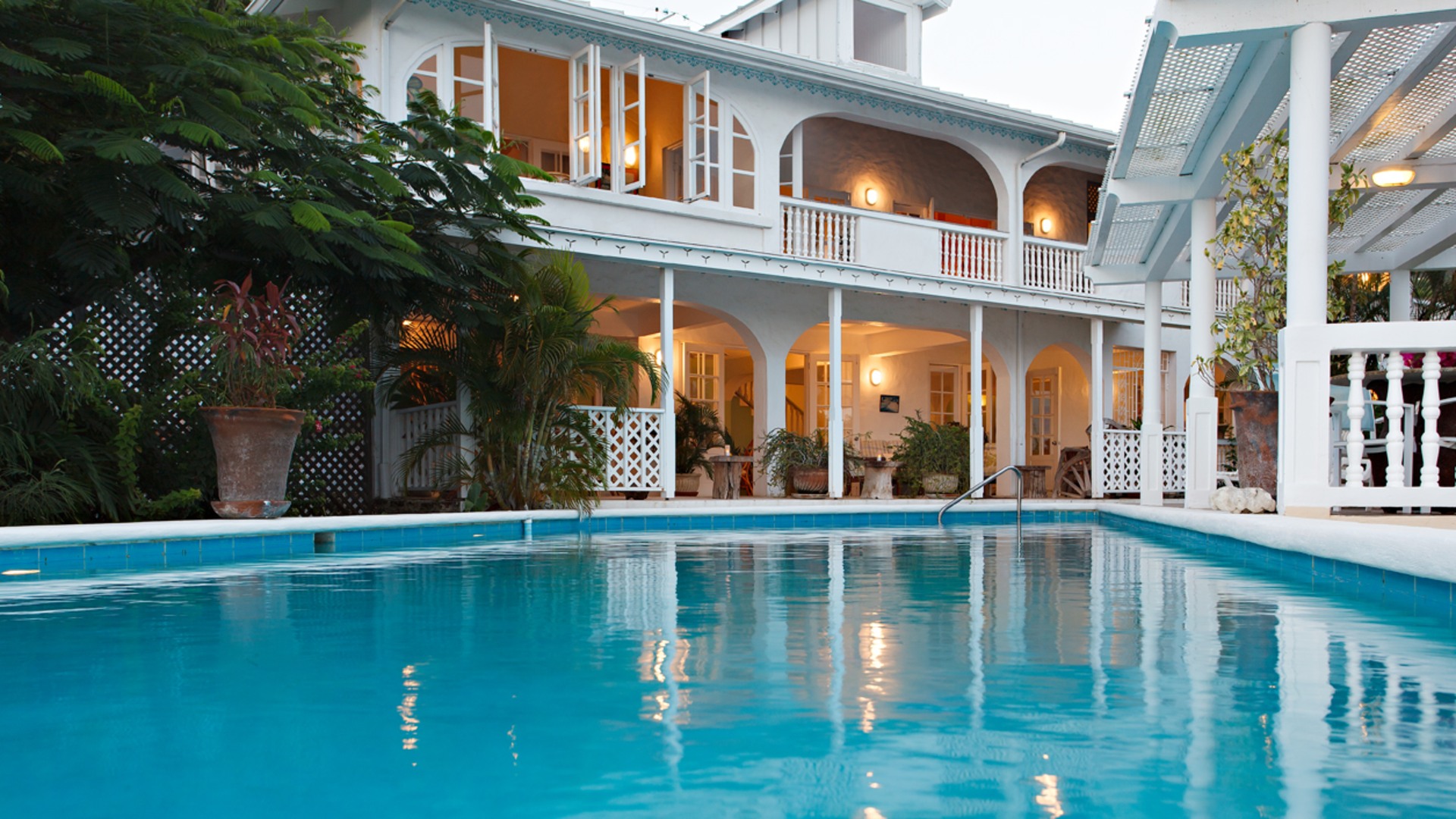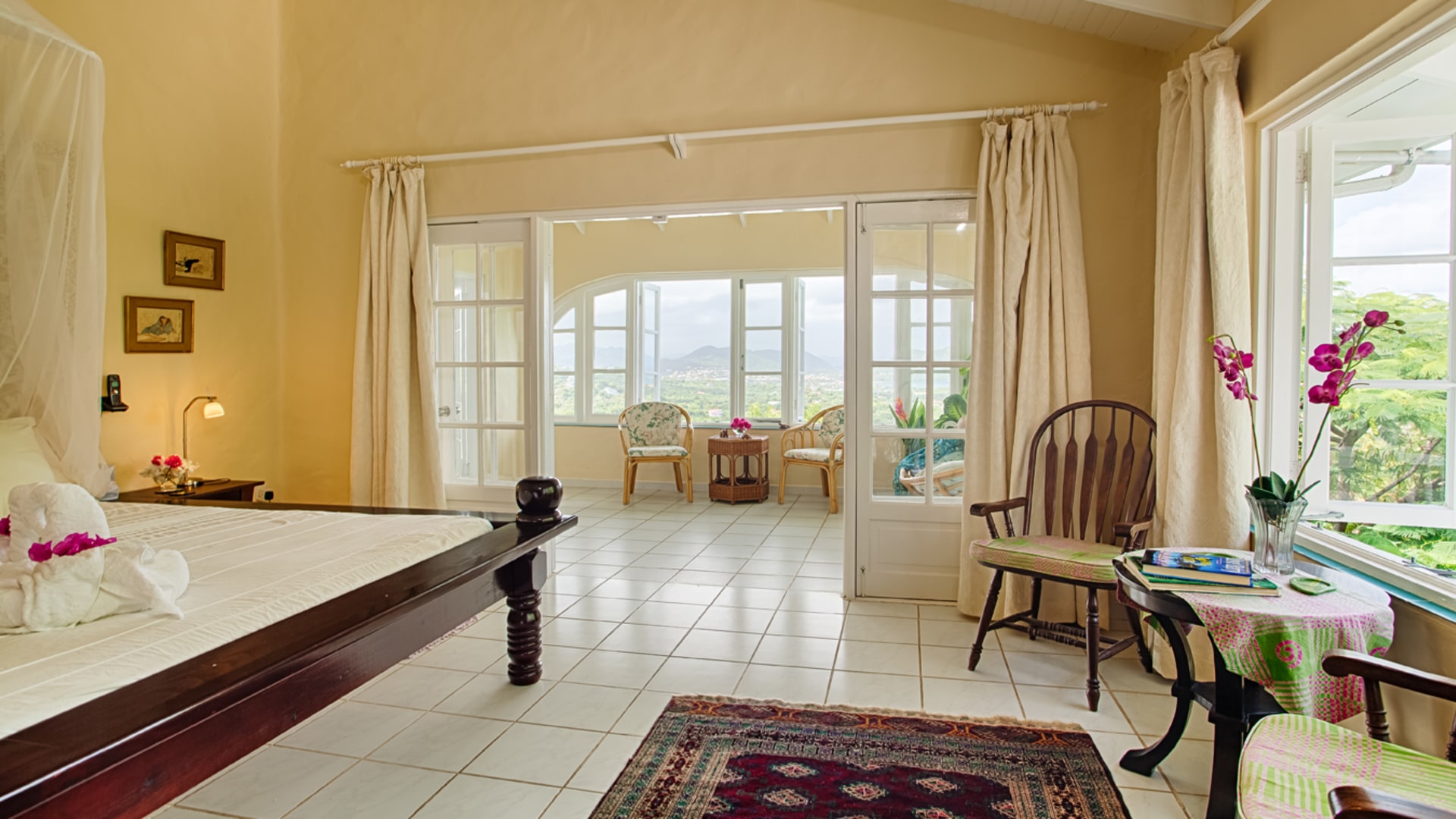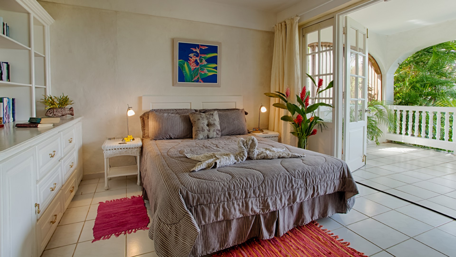 This property is built in plantation style and has high ceilings throughout the house. White floor tiles, complemented by white or pastel walls accentuate the feeling of space, light, and airiness throughout the 5,000 sq.ft building. All the bedrooms are en-suite and open through French doors onto the veranda. There is a large living room downstairs, and the dining area is an extension of the downstairs veranda and adjoins a large, well-equipped kitchen. Overall, this property is perfect for you. It can be used as a large private home or it can continue to be used as an income property for short-term rentals.