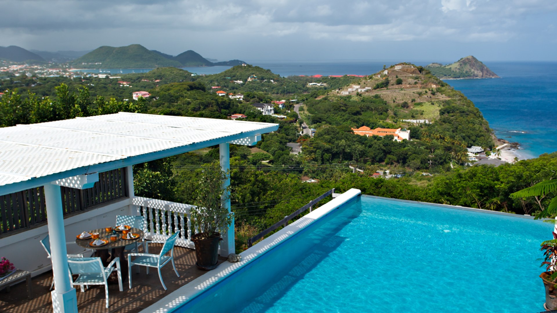 16 Saddleback villa for sale sits the premier hillside, and the highly desirable area of Cap Estate which is located just 7 minutes drive from the commercial and tourist hub of Rodney Bay. The area is calm, green, and serene with an emphasis on privacy. This property boasts a tropical garden, 40ft infinity edge pool, magnificent views over the island as far as Soufriere, and the Caribbean Sea to the West.